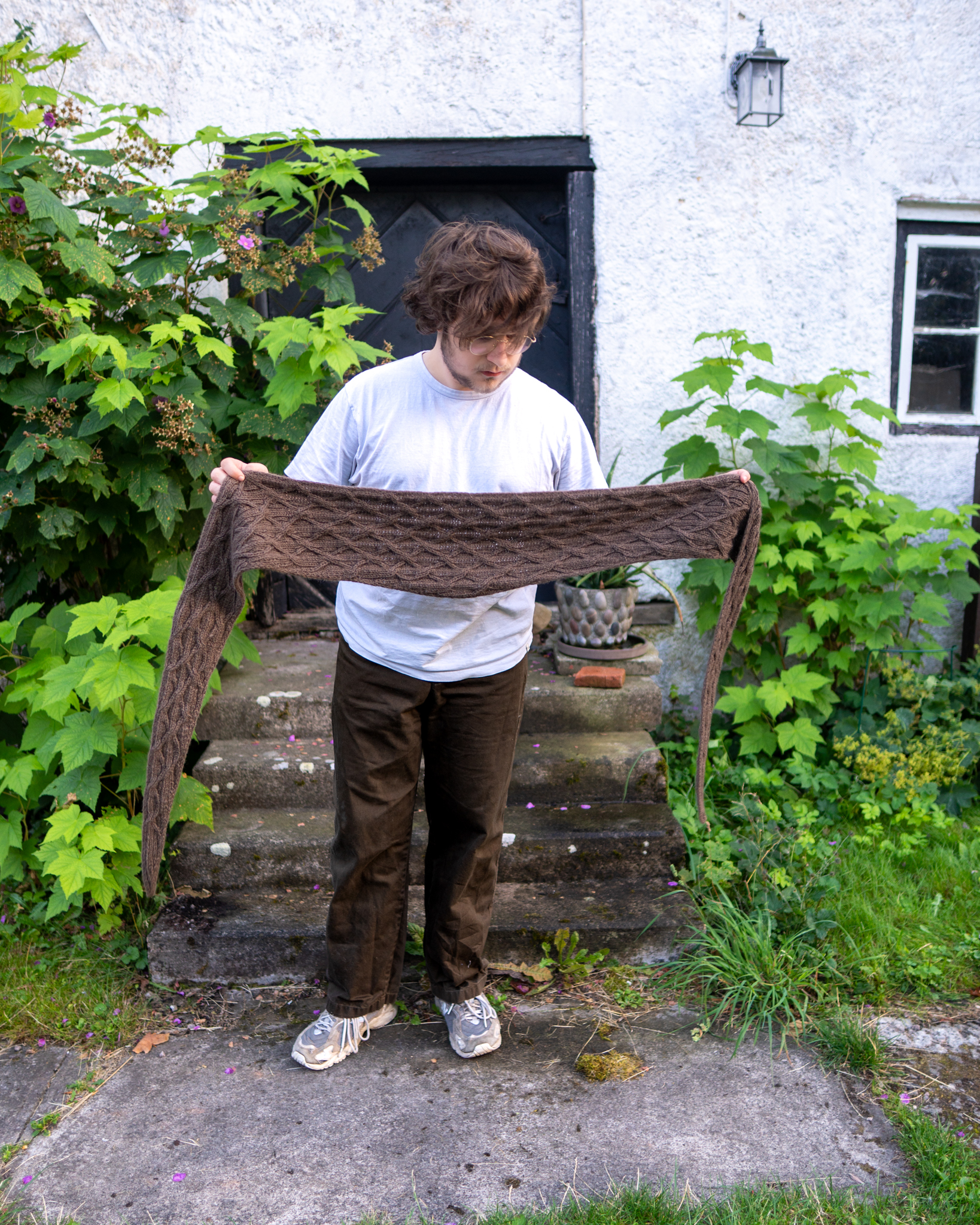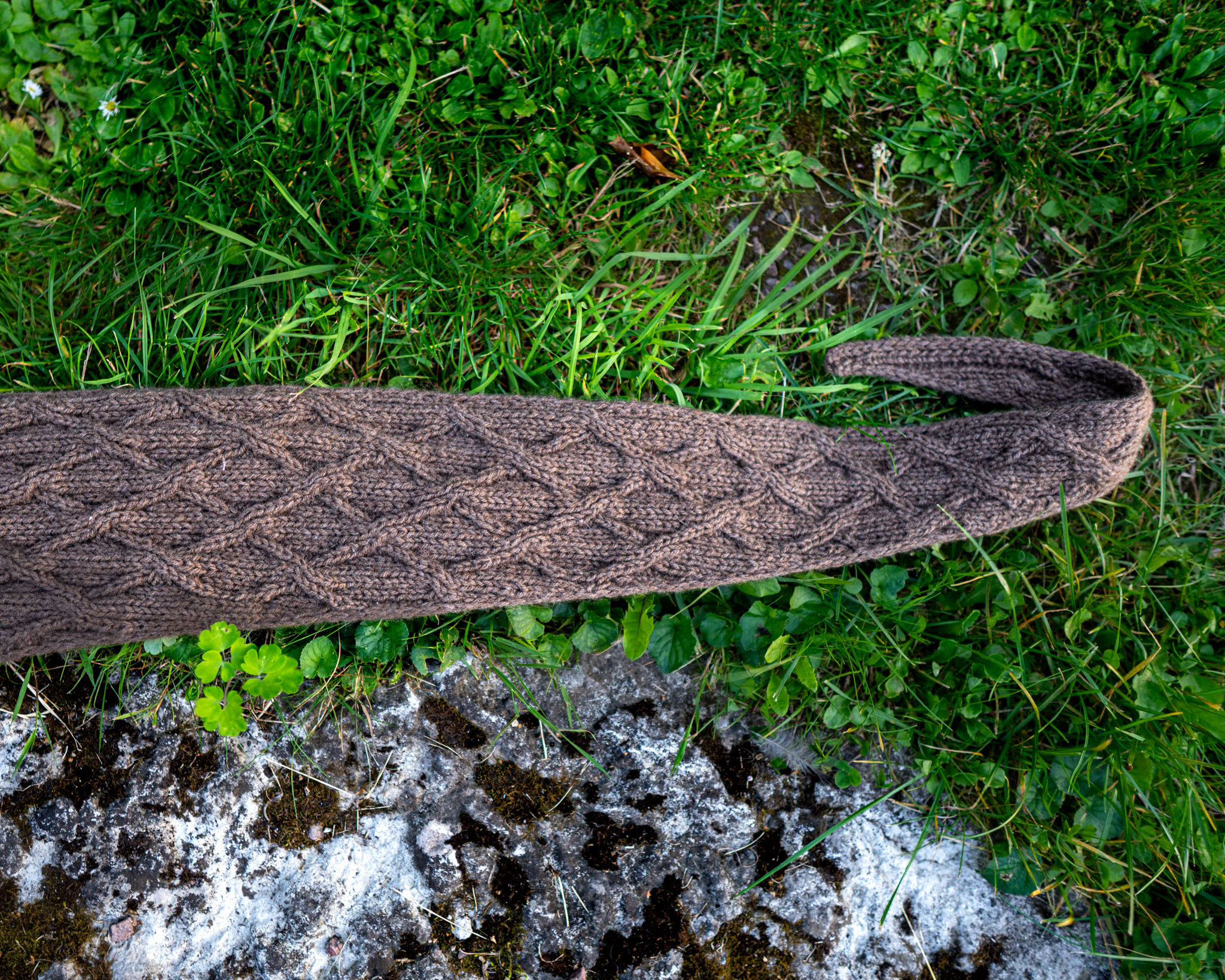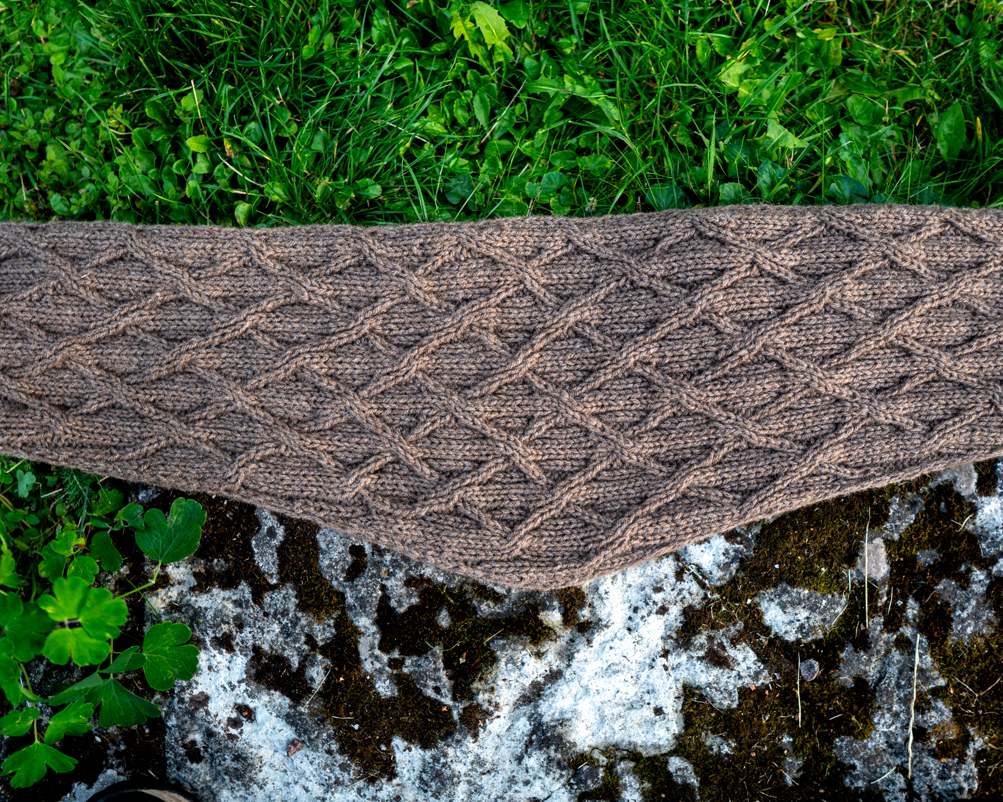 20 mailles /24 rgs en motif de torsades pour 10 cm après blocage
