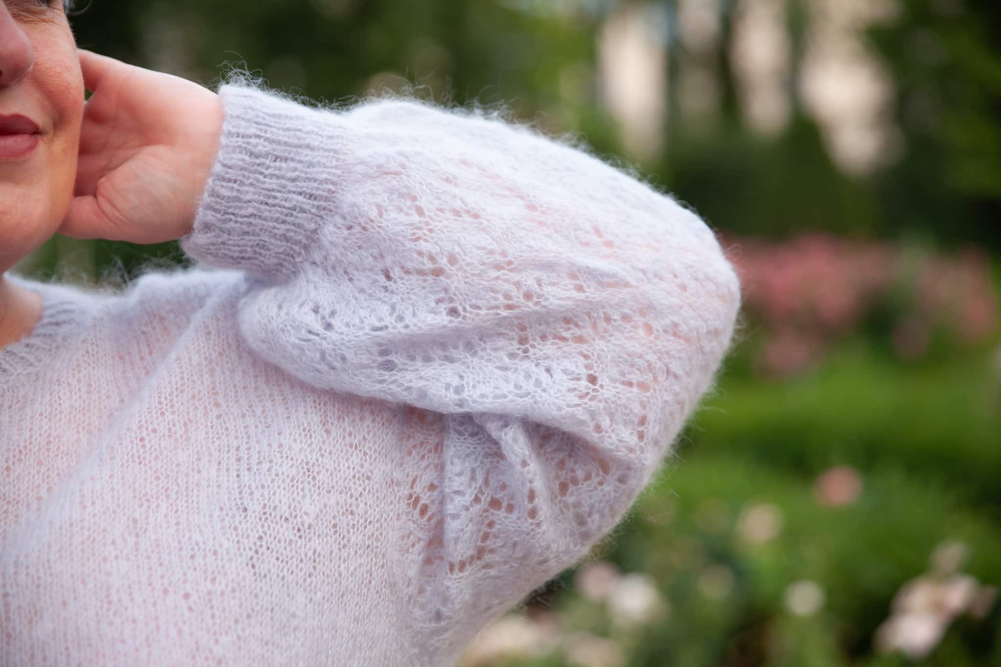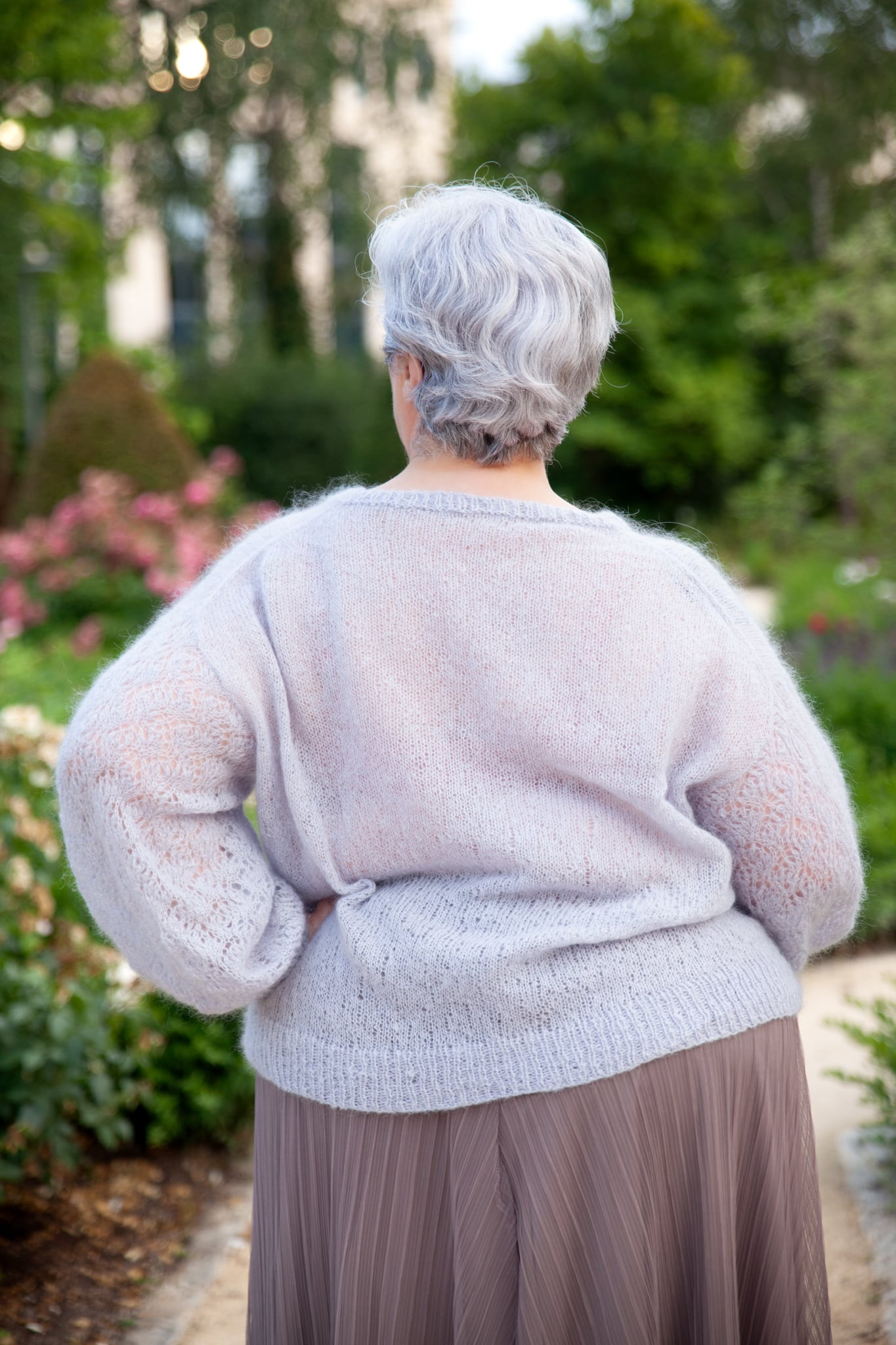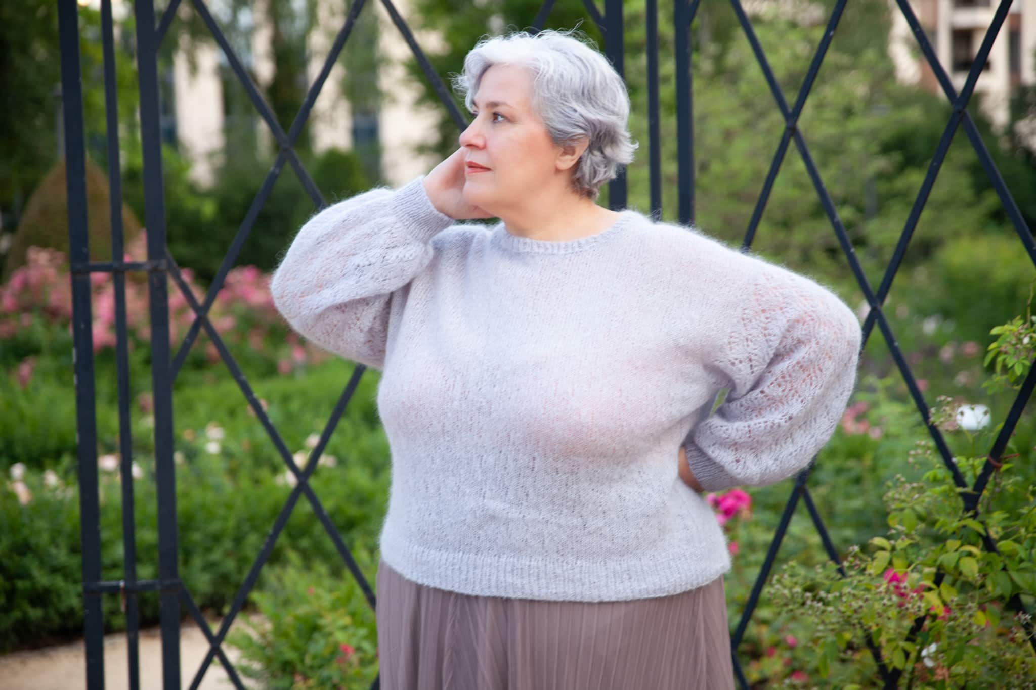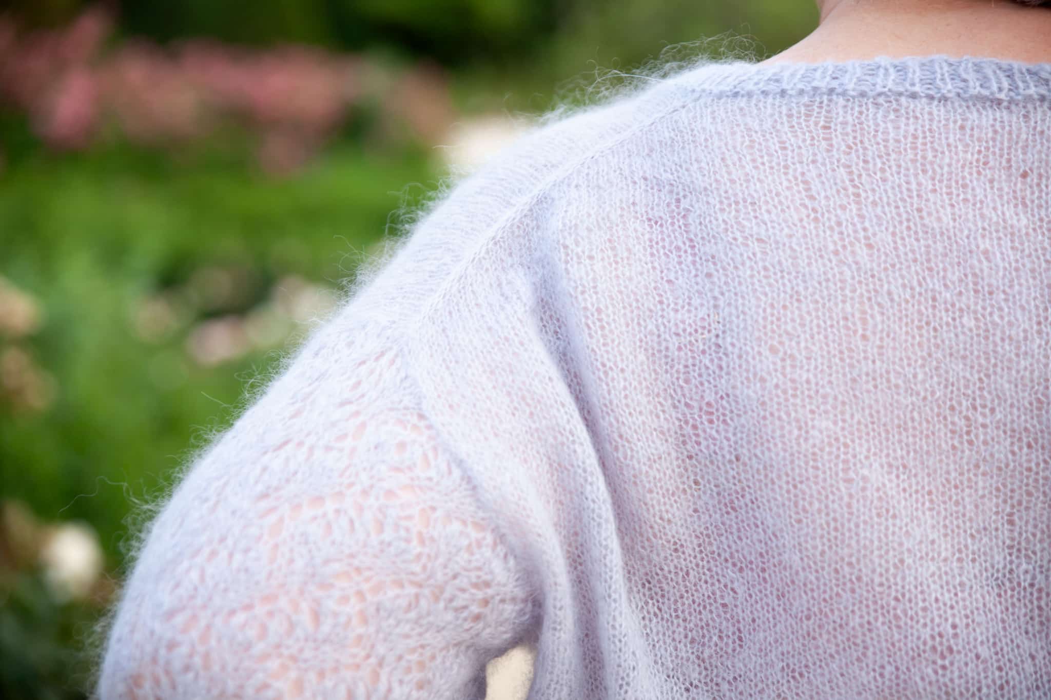 Brume is a top-down sweater knitted with a single strand of Concept Silky Mohair. The body, simple
