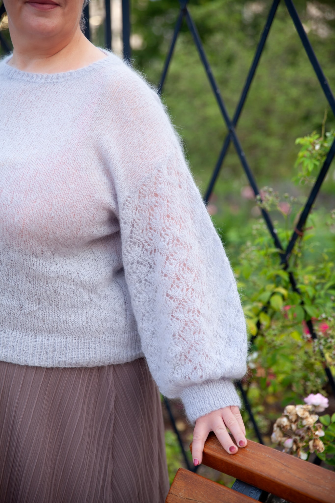 and airy, is worked in stockinette stitch to highlight the light texture of the yarn. But the real charm lies in
