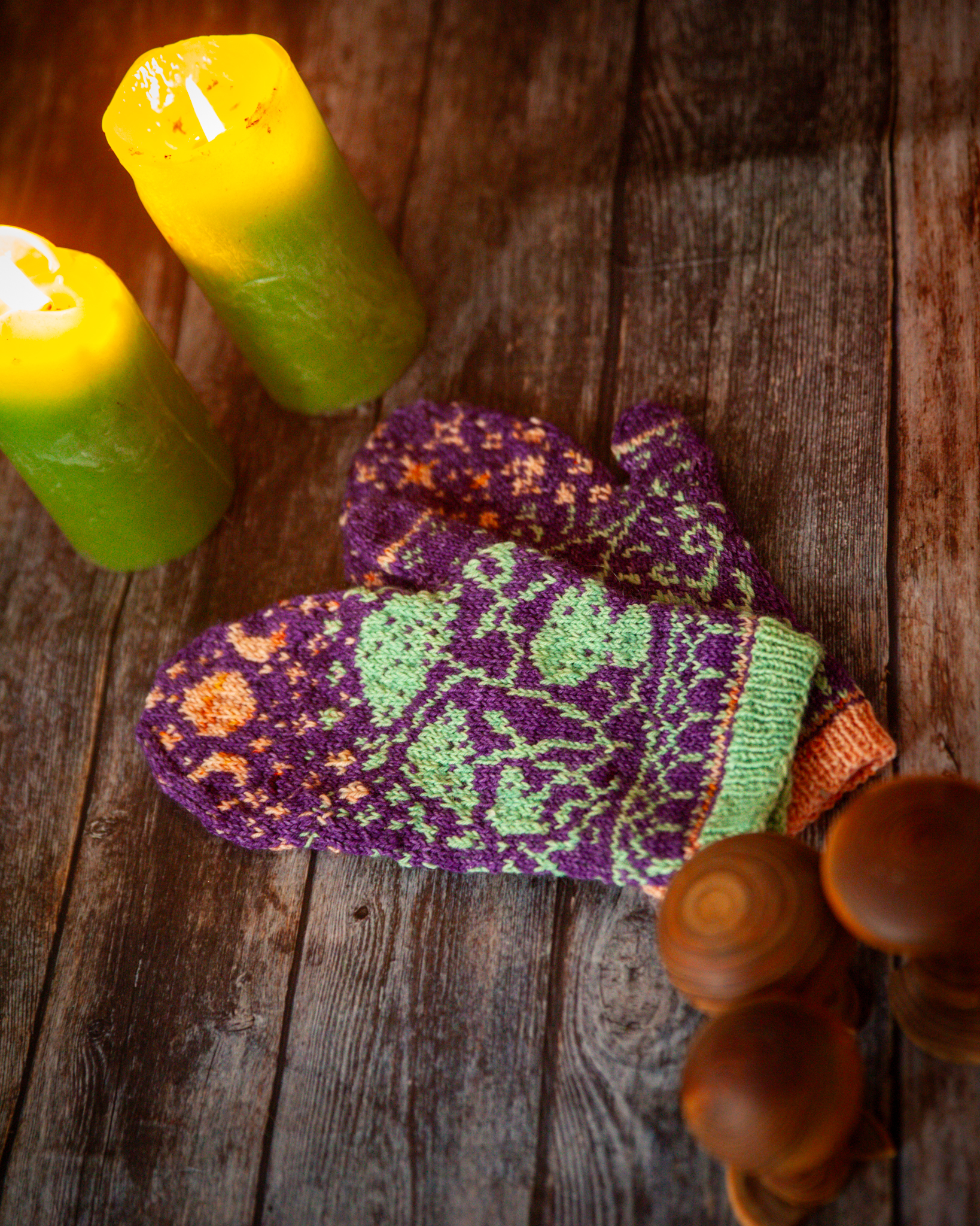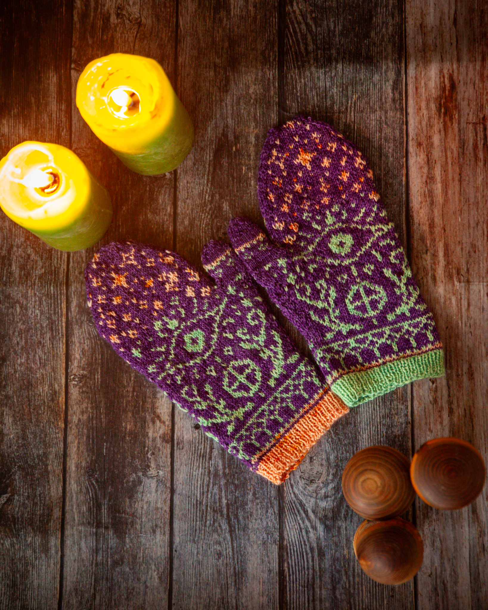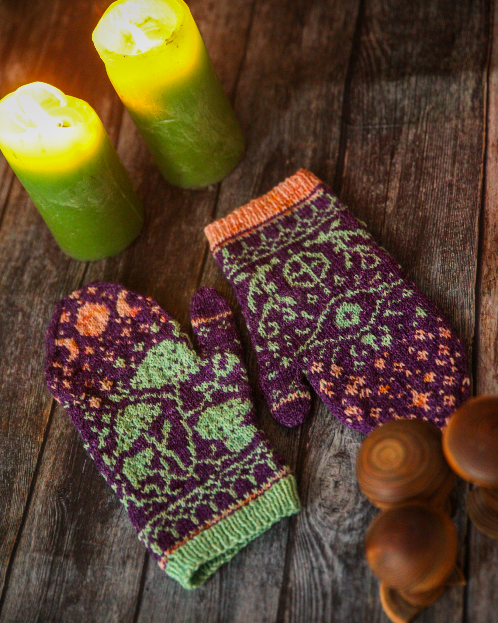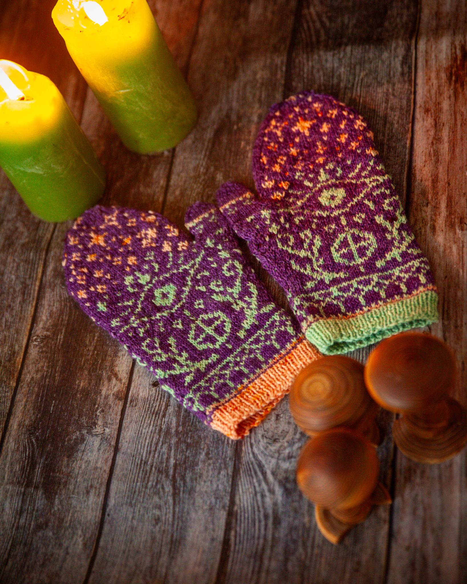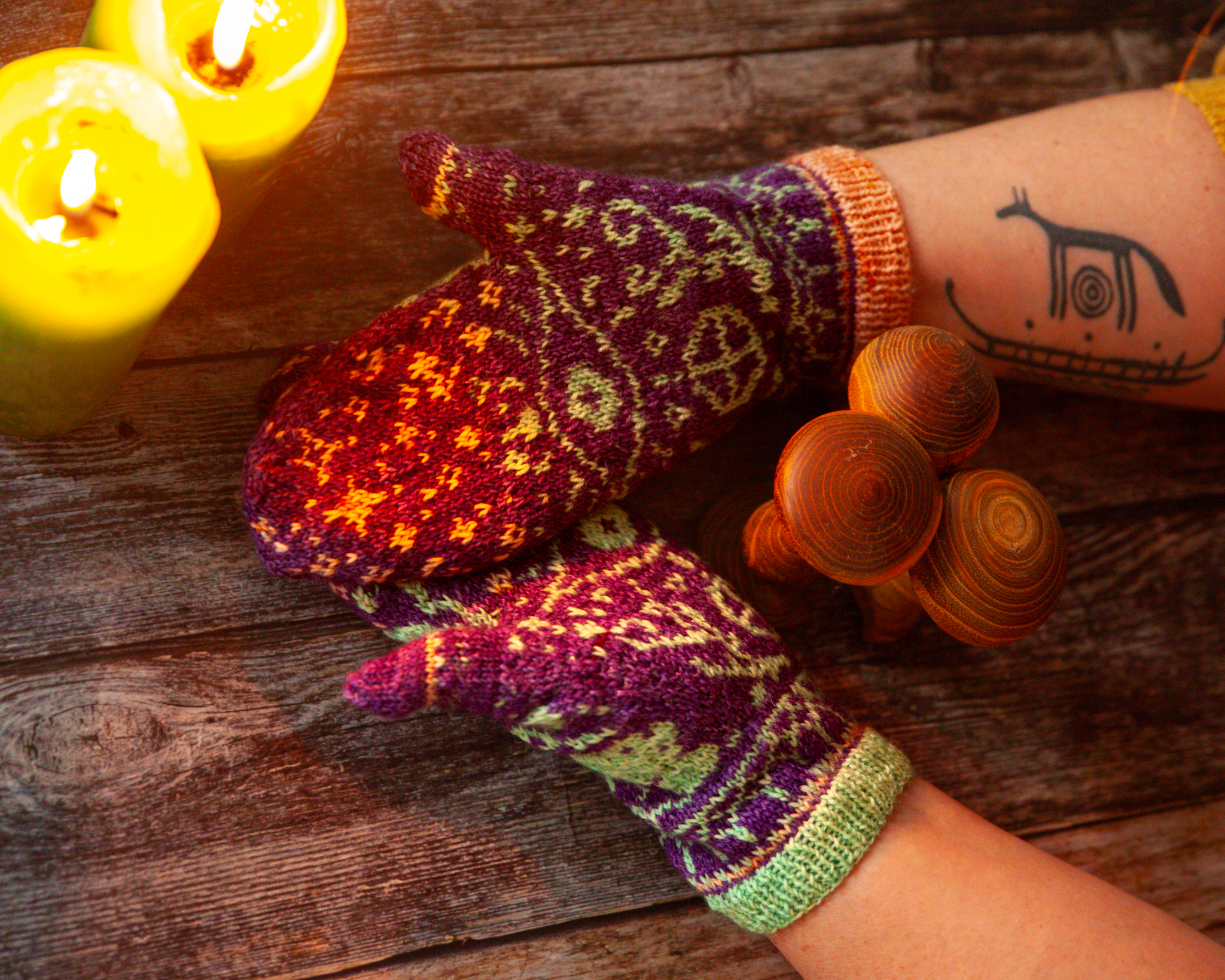 Create your own mystical stranded colorwork mittens! This pattern guides you step by step through knitting mittens decorated with mushrooms and Wiccan symbols, perfect for adding a touch of magic to your winter accessories. Ideal for knitters who want to explore colorwork and fancy patterns.