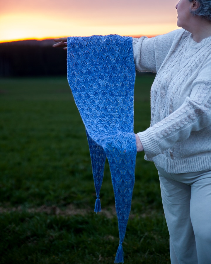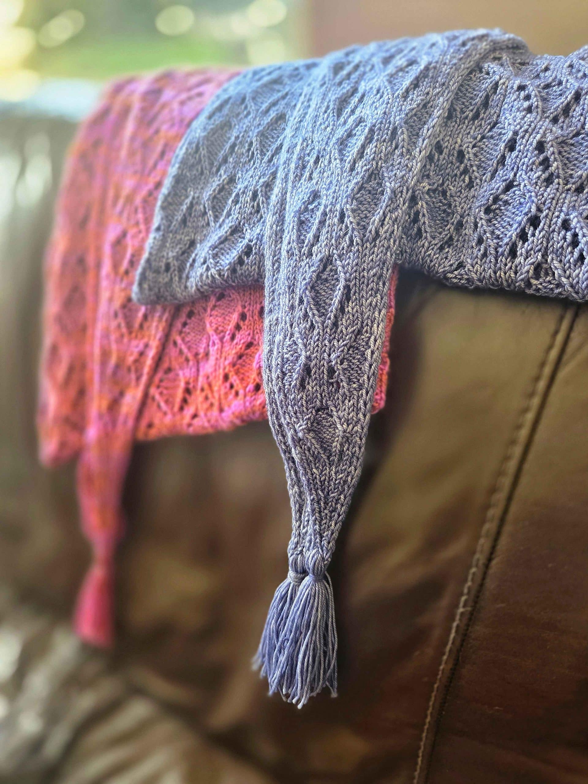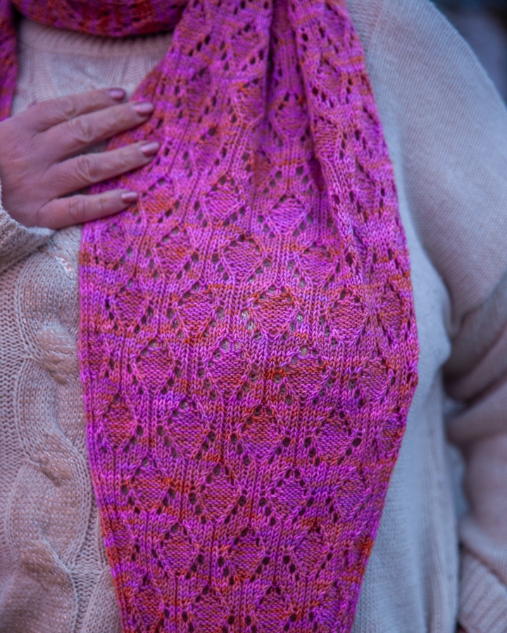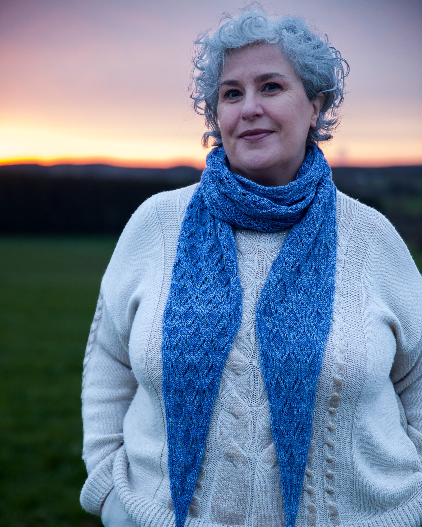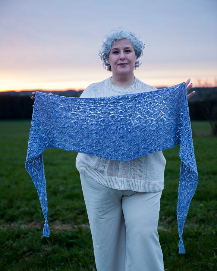 You need two skein of a fingering yarn to knit this shawl. Kits are available here (pre-order only).